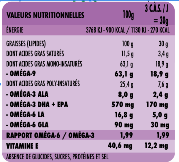 Parfaitement équilibré entre Oméga 3 et Oméga 6.
