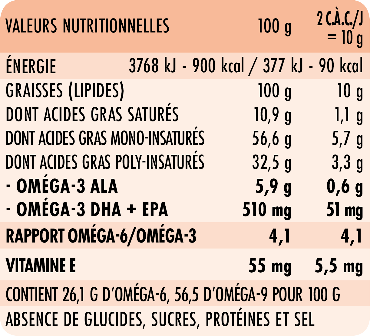 L’huile d’olive et le beurre ne suffisent pas à couvrir les besoins de Bébé puisque ces graisses ne contient ni les Acides Gras Essentiels les plus intéressants pour sa santé - Oméga-3, Oméga-6, DHA - ni de Vitamine E pour protéger ses cellules.